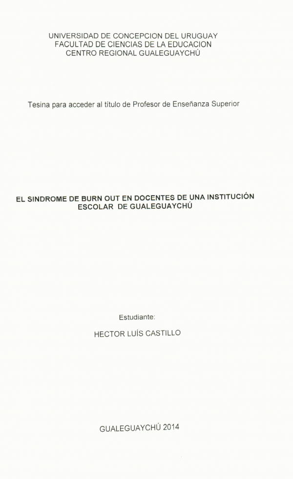 El síndrome de Burn out en docentes de una institución escolar de Gualeguaychú / Héctor Luis Castillo.
