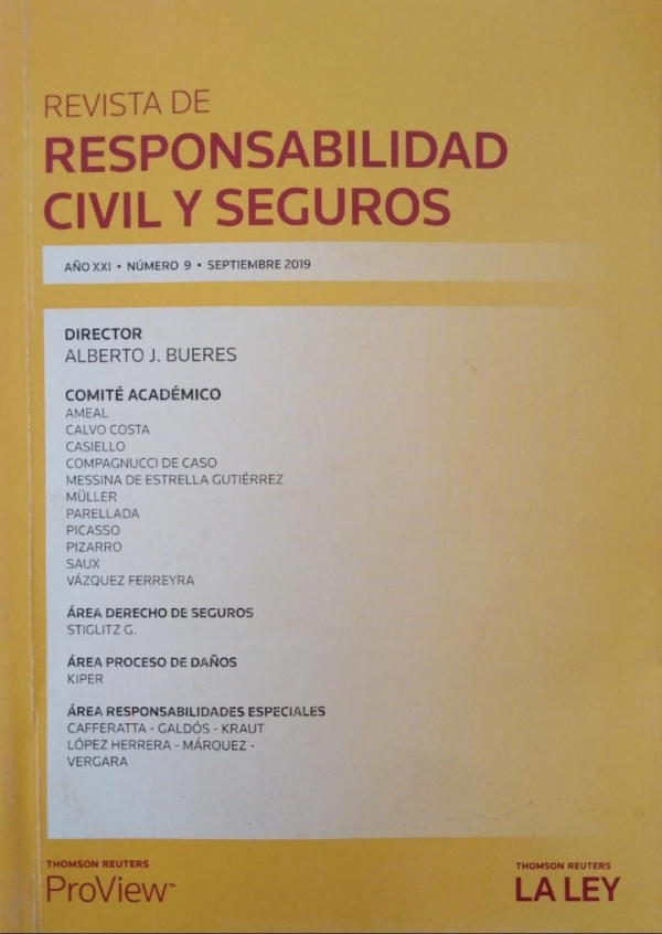 Revista de responsabilidad civil y seguros. Año XXI. Número 9. Septiembre 2019 : publicación mensual de doctrina, jurisprudencia y legislación / dir. Alberto J. Bueres.