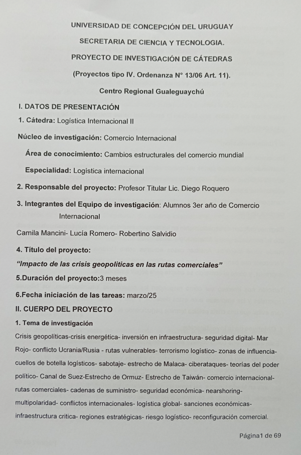 Proyecto de Investigación de Cátedra (Facultad de Ciencias Económicas - Lic. Comercio Internacional - Cátedra Logística Internacional II - 3º año)