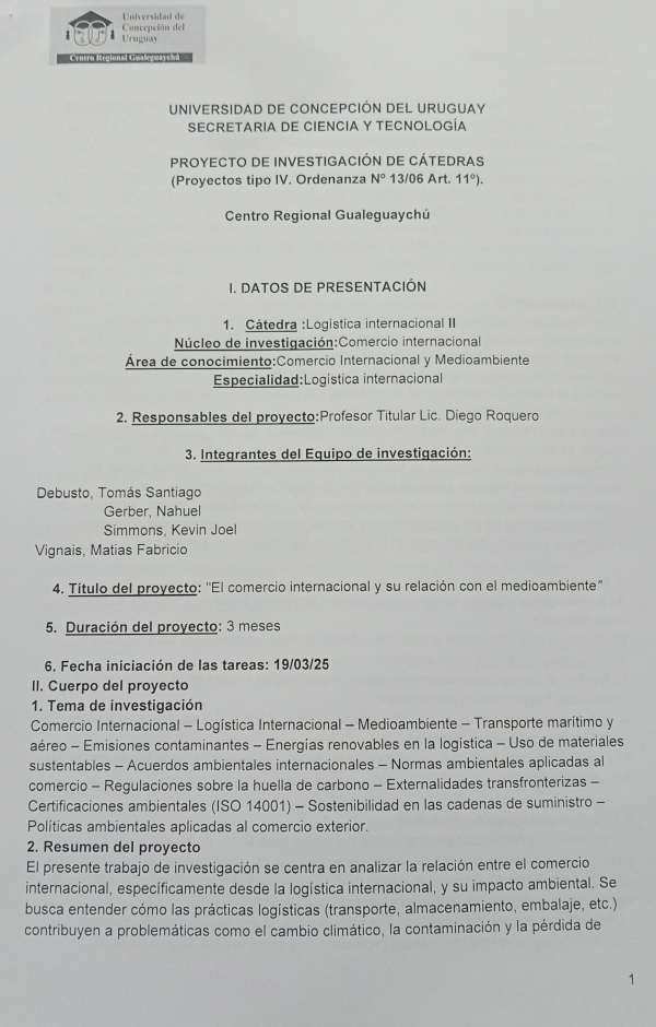 Proyecto de Investigación de Cátedra (Facultad de Ciencias Económicas - Lic. Comercio Internacional - Cátedra Logística Internacional II - 3º año)