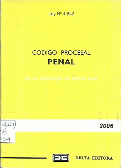 Código procesal penal de la provincia de Entre Ríos (2006) : ley Nº 4.843