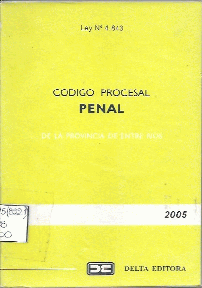 Código procesal penal de la provincia de Entre Ríos (2005) : ley Nº 4.843