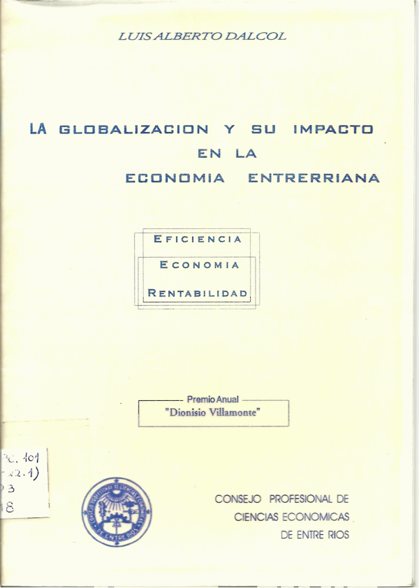 La globalización y su impacto en la economía entrerriana : rentabilidad, eficiencia y competitividad / Luis Alberto Dalcol.