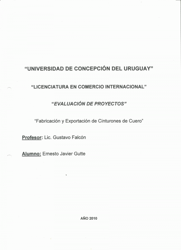 Fabricación y Exportación de Cinturones de Cuero / Ernesto Javier Gutte. por