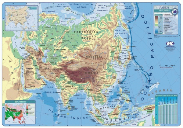 Mapa de Asia físico político /