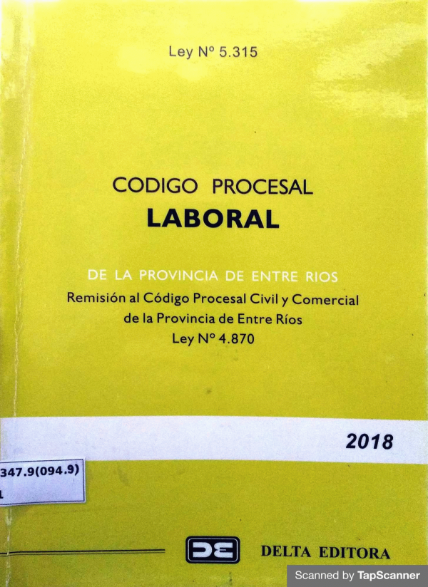 Código procesal laboral de la Provincia de Entre Ríos : Ley 5.315