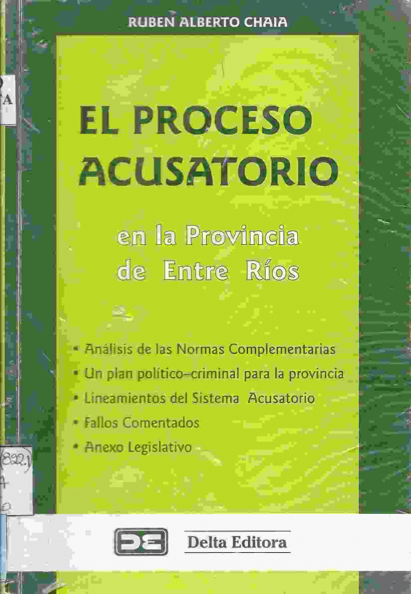 El proceso acusatorio : en la provincia de Entre Ríos / Rubén Alberto Chaia. por