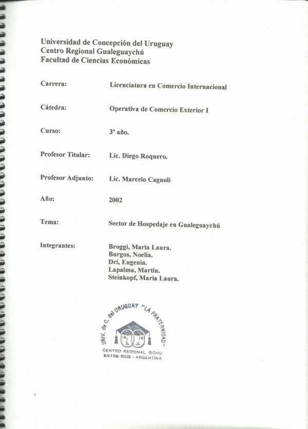 Gualeguaychú : ciudad comercial, industrial y turística : observatorio social de mercado 2005 / José María Blanco (jefe de equipo) ; profesionales intervinientes, Guillermo Albónico, Adriana Lucía Sánchez, Estela Valentina Miño ; alumnos intervinientes, Horacio Aleu ... [y otros]. por